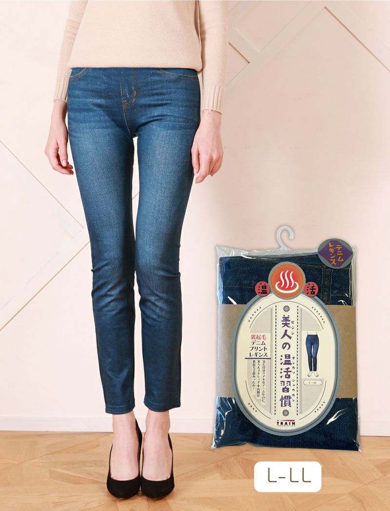 裏起毛デニムプリントレギンス