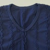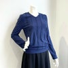 Vネックが深くないので胸元が気にならず、それでいて首は長くスッキリ見えます。 柄入りなので一枚で着てもシンプルすぎず、ケーブルニット感覚で着られます。」